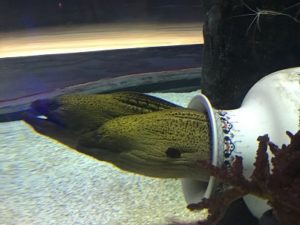 ウツボが中国っぽいツボから顔を出してます。ちょっと気持ち悪い・・・