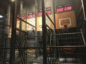 バスケットボールは4Coinで利用可。ゴールまでの距離が異なるタイプのものが数種類あり、小学生くらいからでもできます。