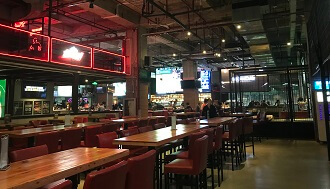 ここは上海か?と疑いたくなるような、アメリカのスポーツバーという雰囲気。