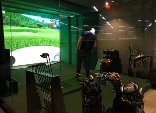 正面にはすごく大きなスクリーンが3つあり、バスケットボール、野球、サッカーの映像が流れていました。