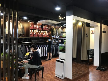 中に入ると、日本語でお出迎え。まるで日本のスーツ屋さんにいるかのようです。